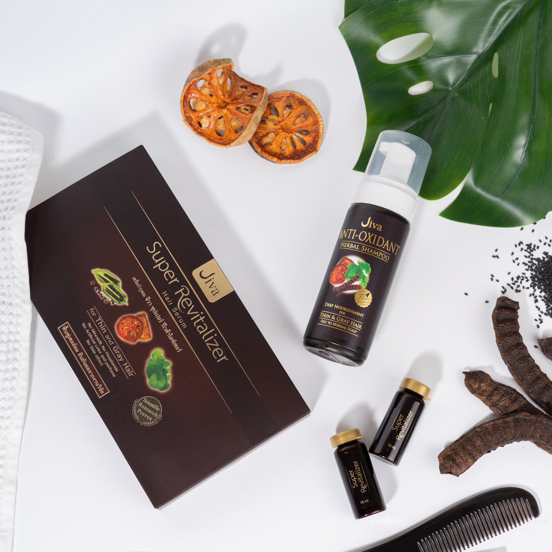 ศูนย์ดูแลสุขภาพผมจีวาได้พัฒนาเซรั่มบำรุงผม จากตำรับสมุนไพรเดิม ผสานความรู้ด้านเภสัชศาสตร์ โดยผ่านการทดสอบทั้งในห้องปฏิบัติการจากสถาบันการทดสอบชั้นนำต่างๆ และผลจากอาสาสมัคร เพื่อยืนยันประสิทธิผลของการลดผมร่วง และทำให้เส้นผมแข็งแรงอย่างเป็นธรรมชาติ ไม่ต้องพึ่งยาหรือสารเคมี ที่จะเกิดผลต่อร่างกายได้